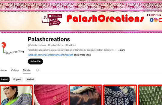 Client: Palashcreations Service: Youtube Channel & Facebook Page Handling